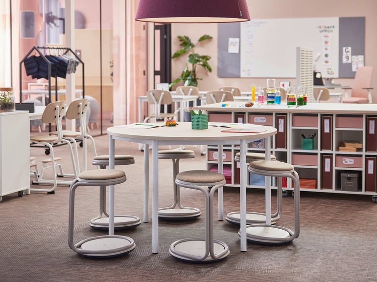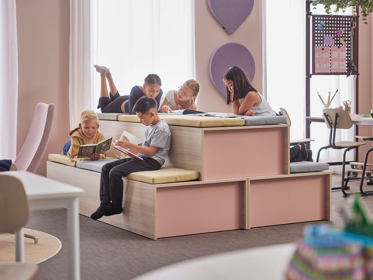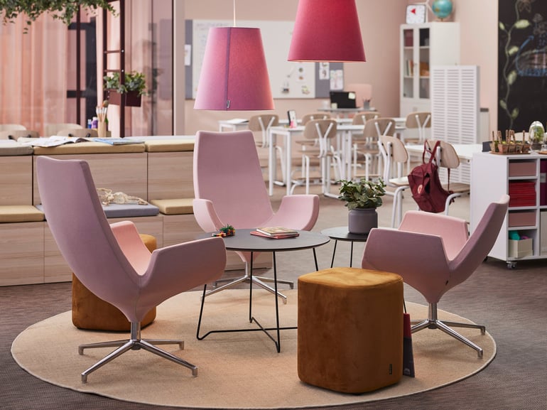 Setustofuhúsgögn í kennslustofunni skapa afslappað og heimilislegt andrúmsloft. Það er mikill kostur fyrir nemendur sem þurfa að slaka á.